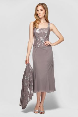 Sequined Chiffon Tea Length Petite Jacket Dress David S Bridal